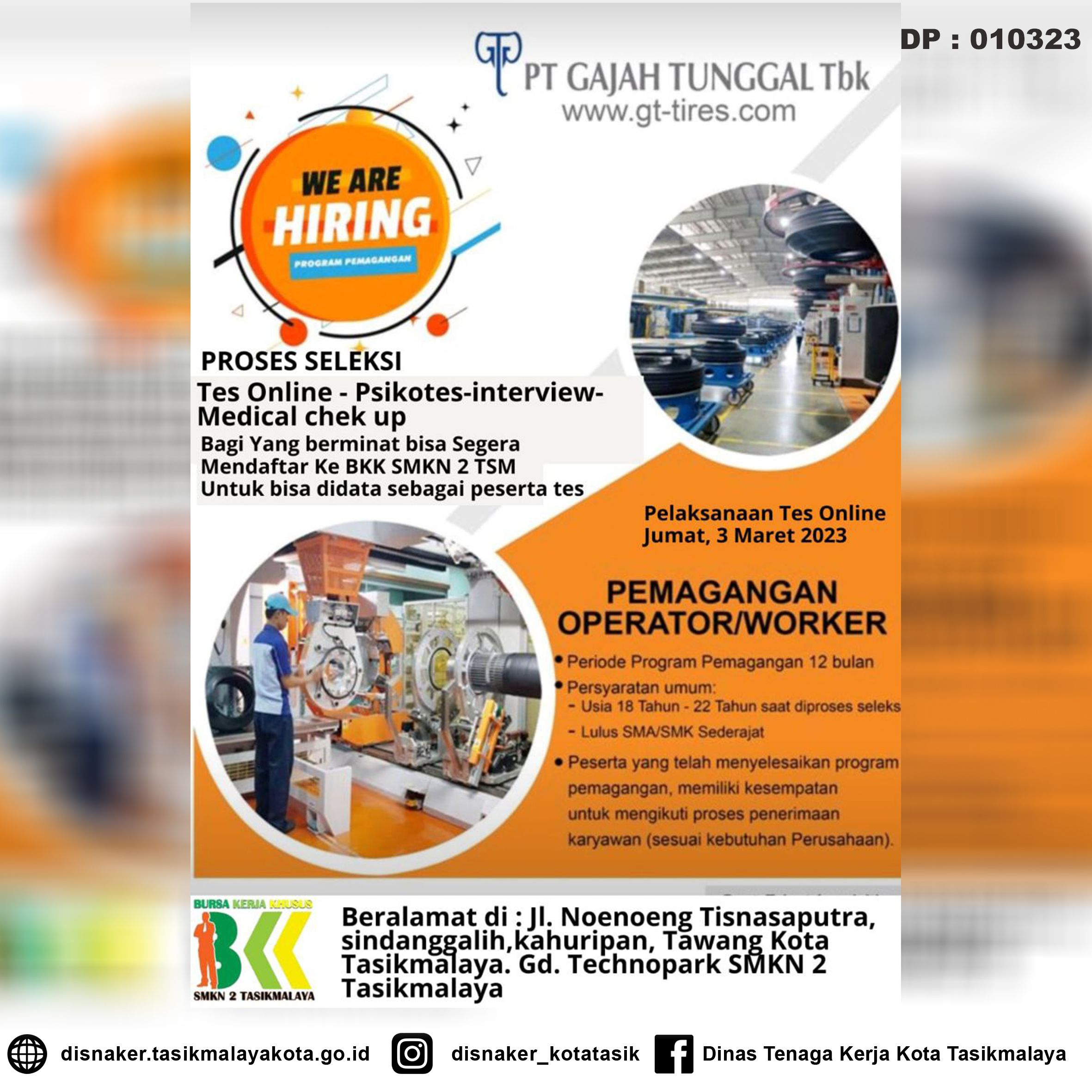 PT. GAJAH TUNGGAL Tbk sedang membutuhkan tenaga kerja baru Untuk Program Pemagangan kualifikasi bisa dilihat pada slide berikutnya.
