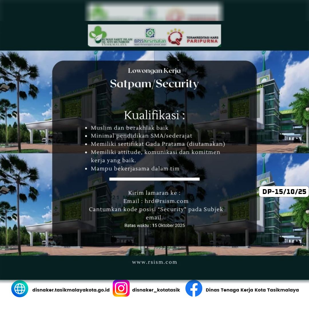 RS Islam Siti Muniroh Tasikmalaya lagi buka kesempatan buat kamu yang siap menjaga keamanan rumah sakit dengan profesional ????
