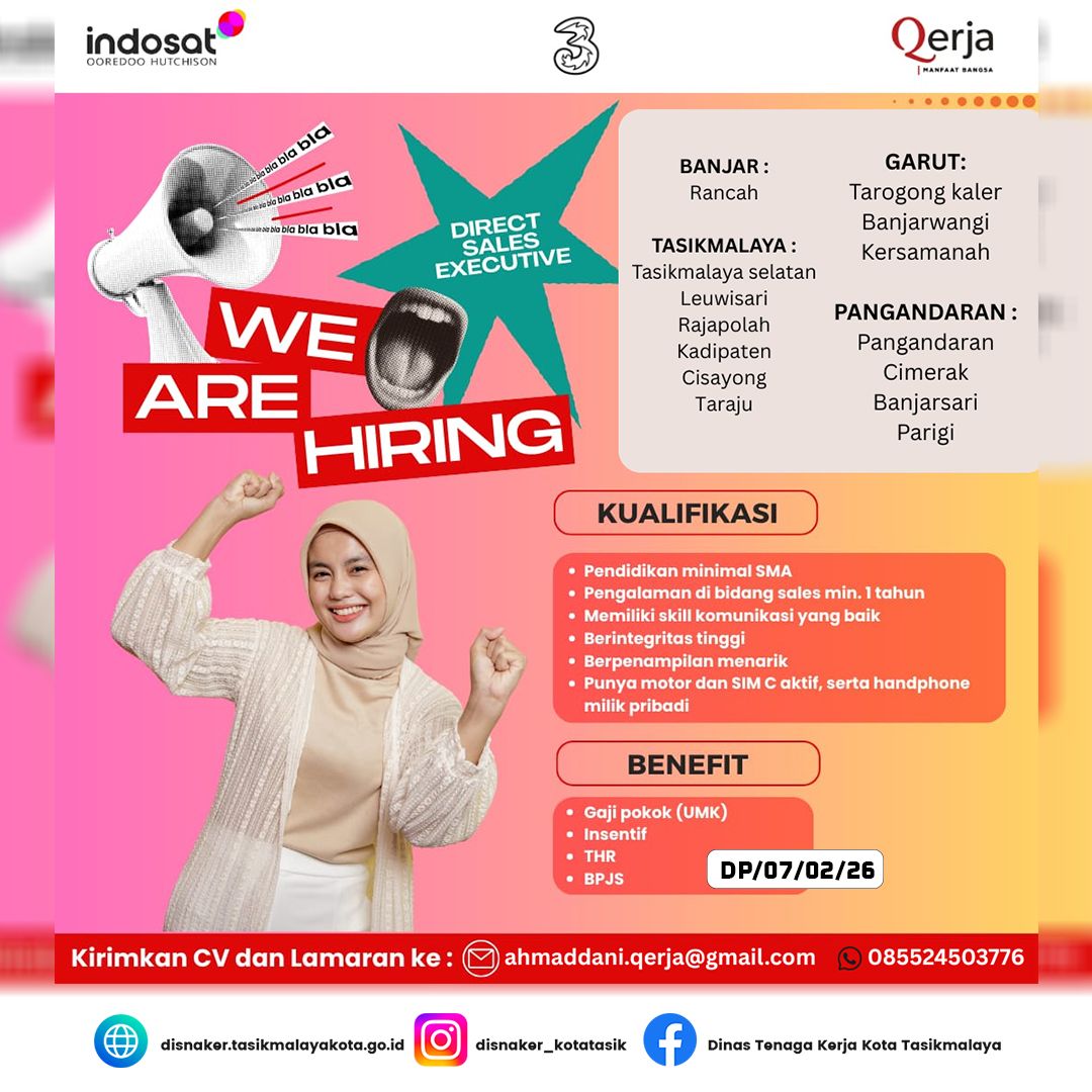 Indosat Ooredoo Hutchison melalui mitra Qerja membuka kesempatan bagi tenaga profesional yang dinamis dan berorientasi pada target untuk bergabung sebagai Direct Sales Executive. Posisi ini tersedia untuk penempatan di berbagai wilayah Jawa Barat.