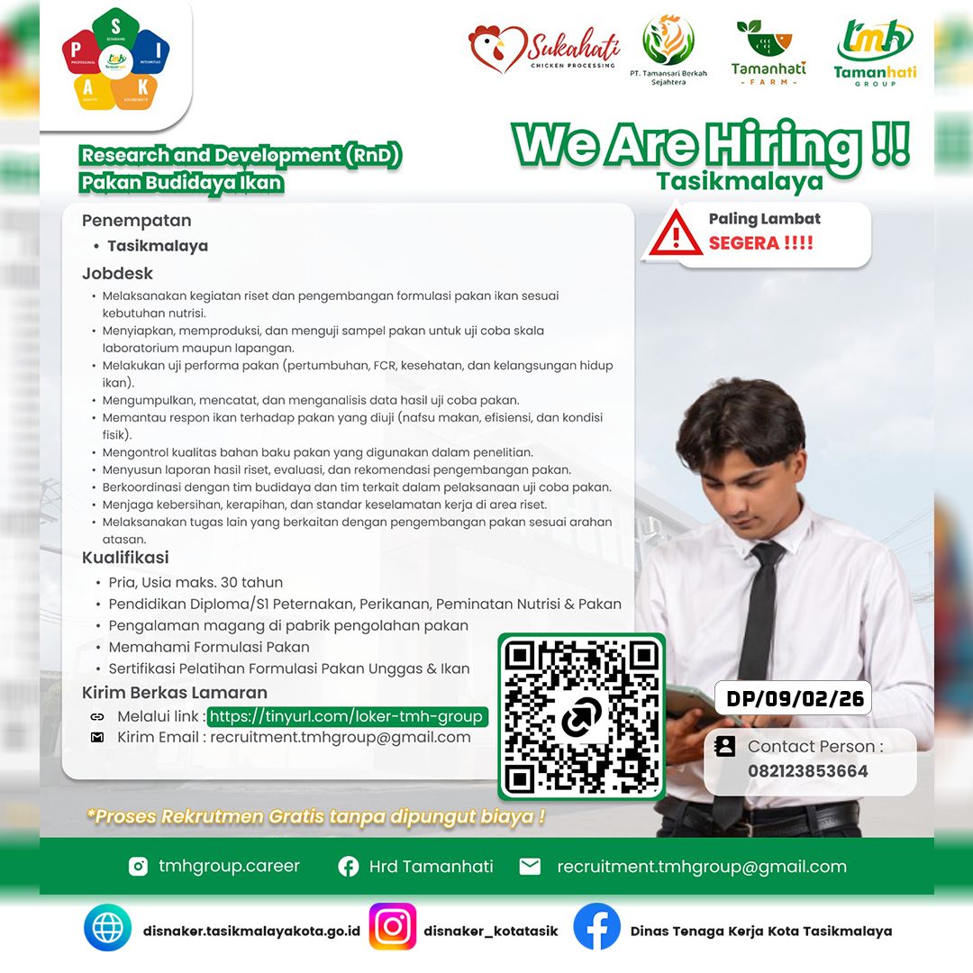 1. RESEARCH AND DEVELOPMENY RnD Pakan (Budidaya Ikan): Pendidikan min. D3/S1 Peternakan/Perikanan, usia maks. 30 tahun.