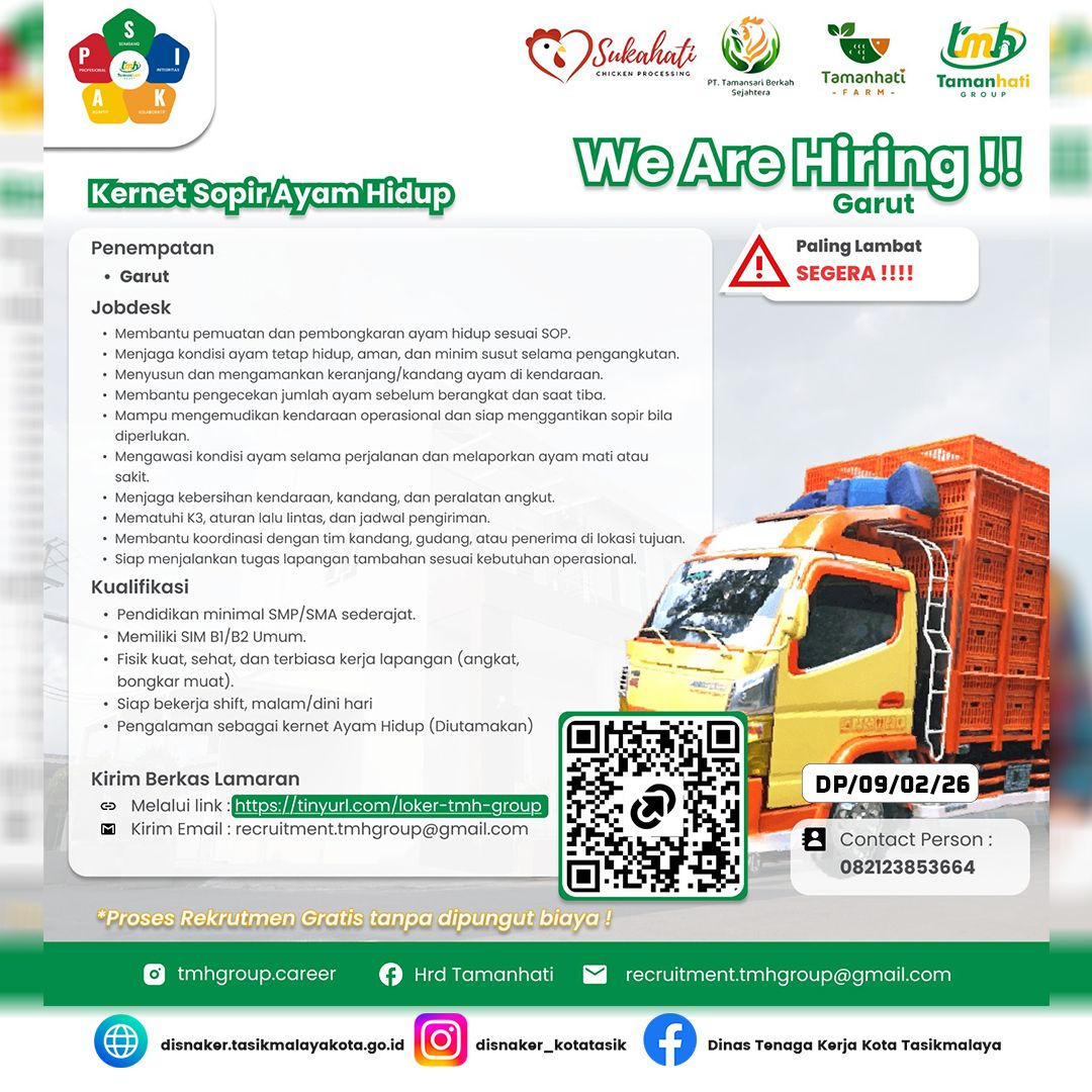 1. Kernet Sopir Ayam Hidup: Pendidikan min. SMP/SMA, memiliki SIM B1/B2 Umum, siap bekerja shift malam/dini hari.