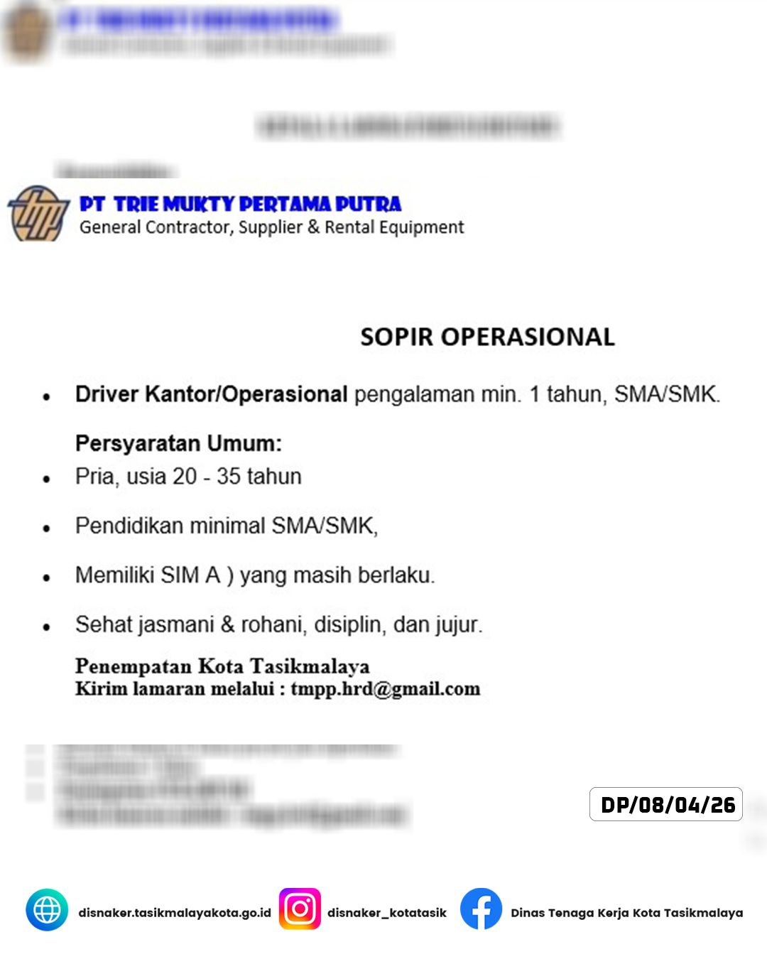 - SOPIR OPERASIONAL (Lokasi: Kota Tasikmalaya)