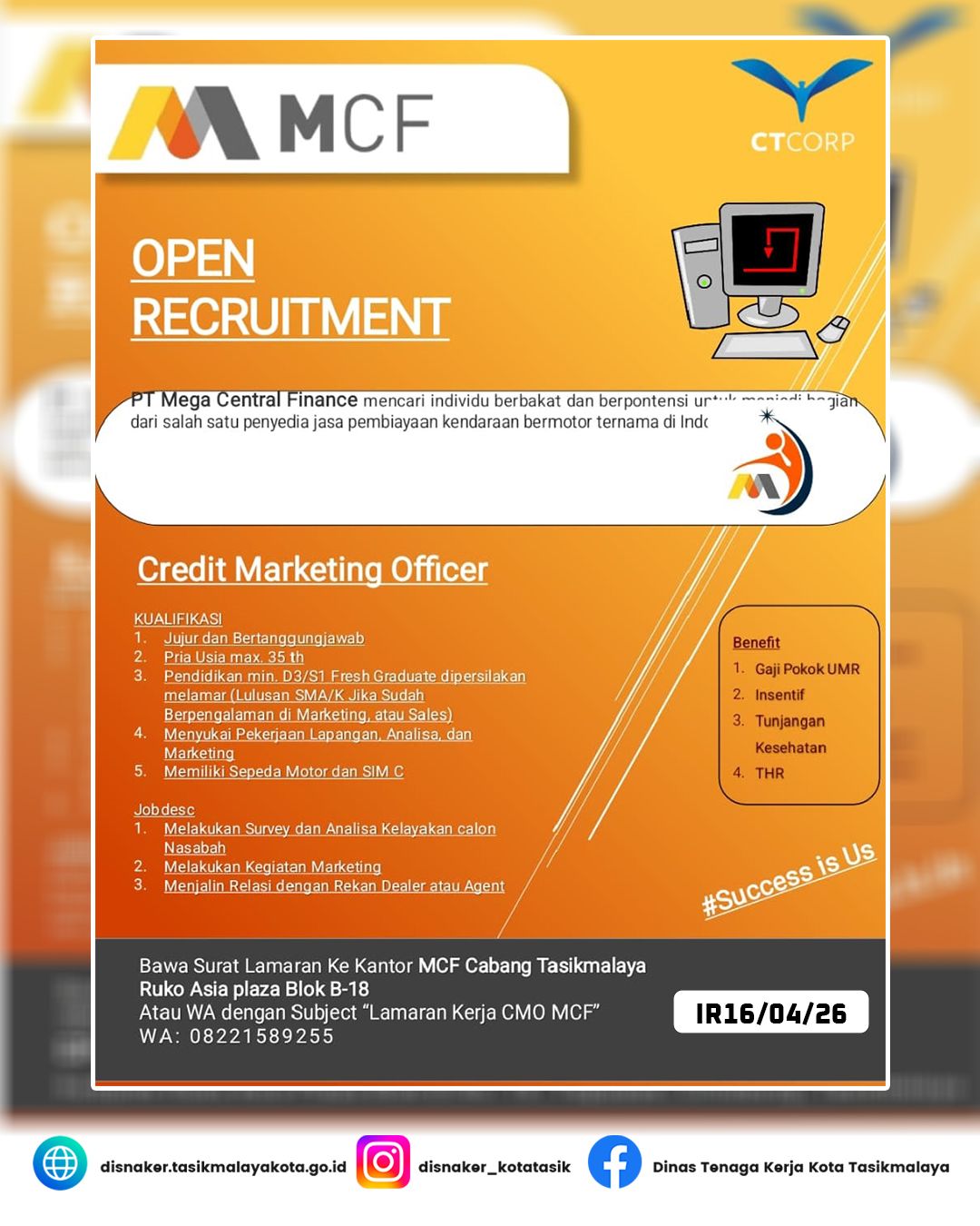 Bawa Surat Lamaran langsung ke Kantor MCF MAF Cabang Tasikmalaya: